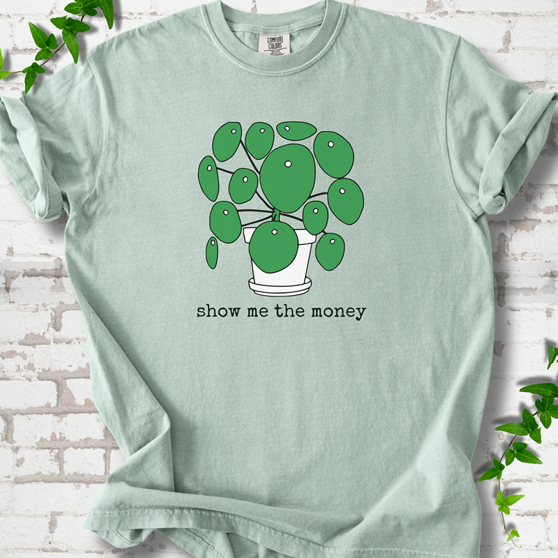 Featuring the iconic money plant (Pilea peperomioides), our Comfort Colors™ tee blends soft vintage-washed cotton with playful plant-lover energy. Perfect for repotters, propagators, and thoughtful gifting for anyone who keeps a windowsill full of green.